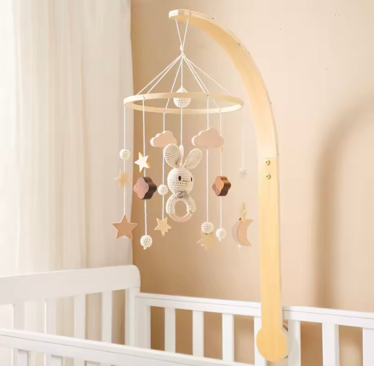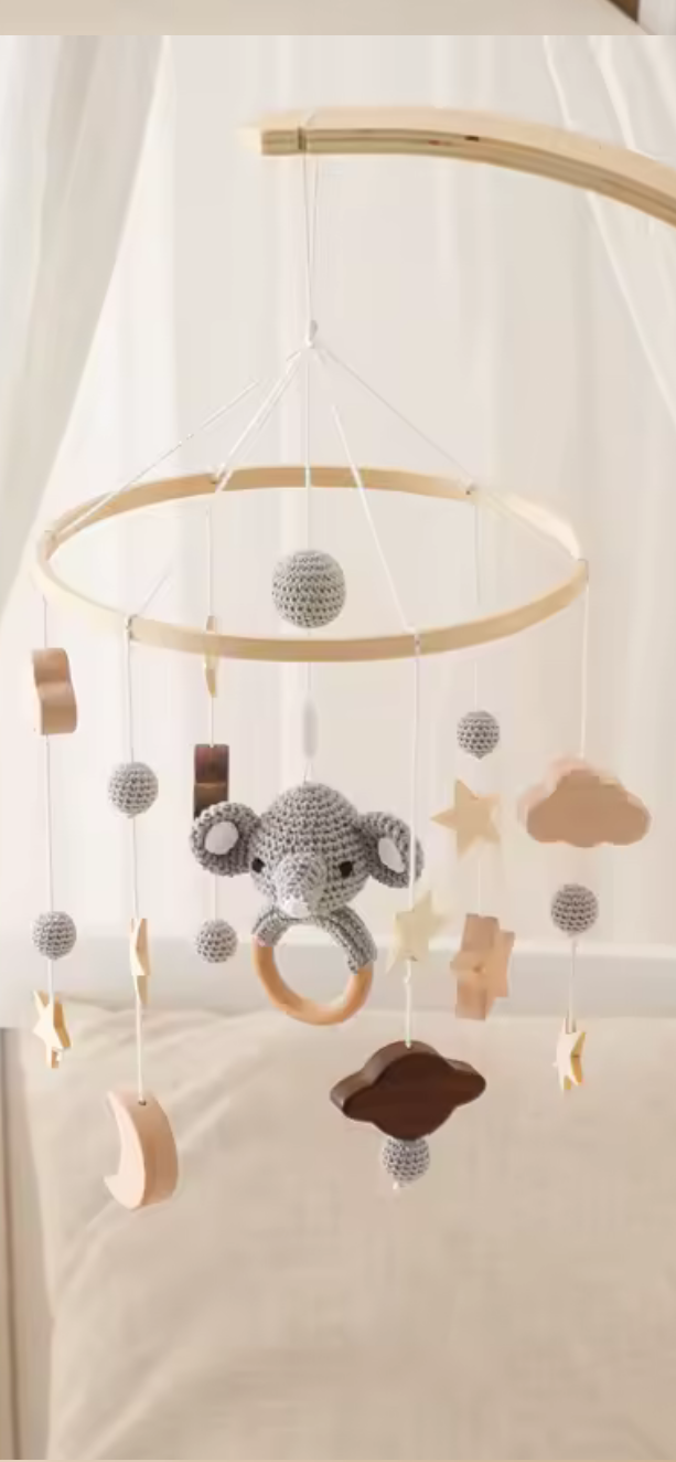 Apportez une touche poétique et naturelle à la chambre de bébé avec notre mobile en bois. Conçu pour stimuler les sens tout en créant une ambiance douce, ce mobile décoratif accompagne bébé dès ses premiers mois, au-dessus du lit ou de la table à langer.